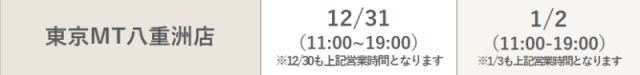 年末年始の東京ミッドタウン八重洲店の営業は下記の通りになります。