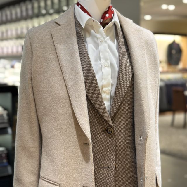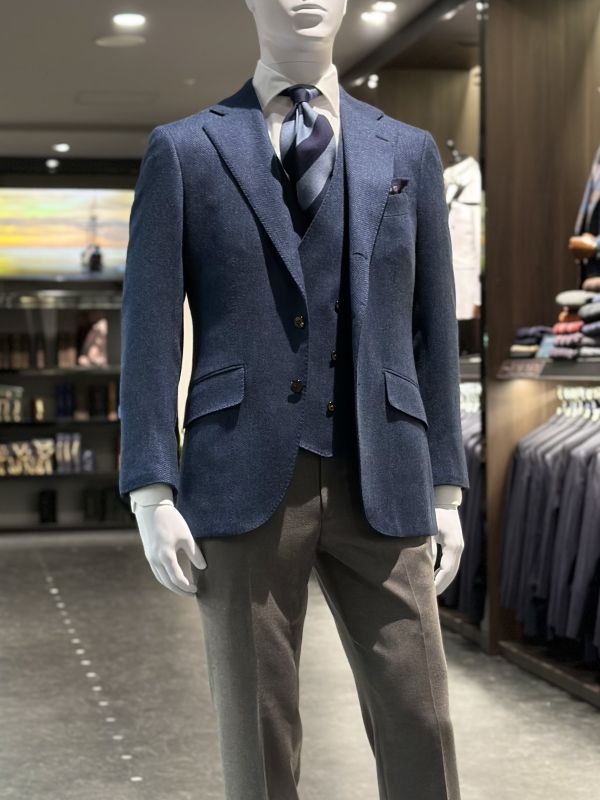 秋冬スーツはお持ちのコートとの相性も考えながらお仕立てすると良いです〇