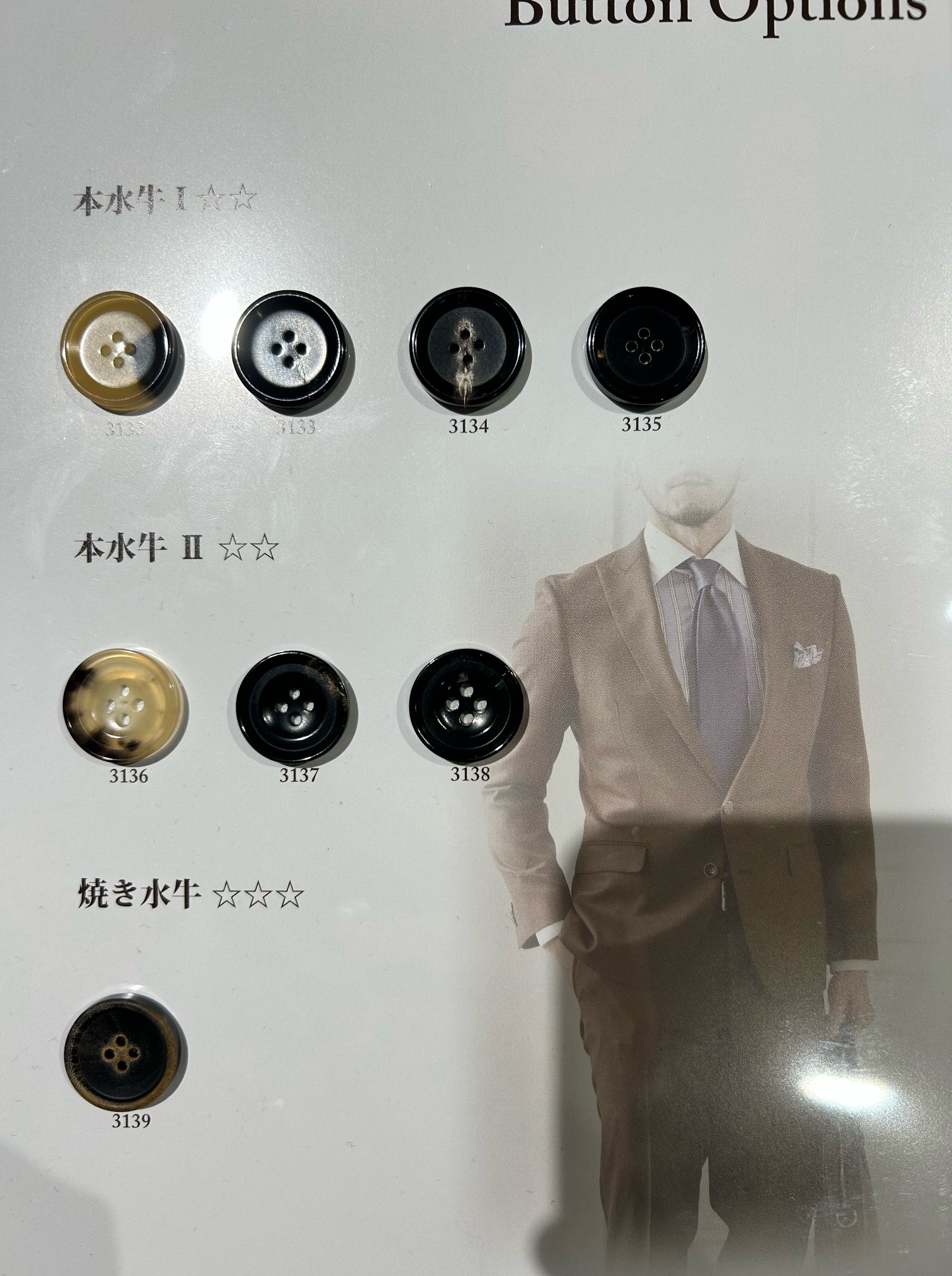 スーツ生地の次に皆様悩まれる釦・裏地ですが、