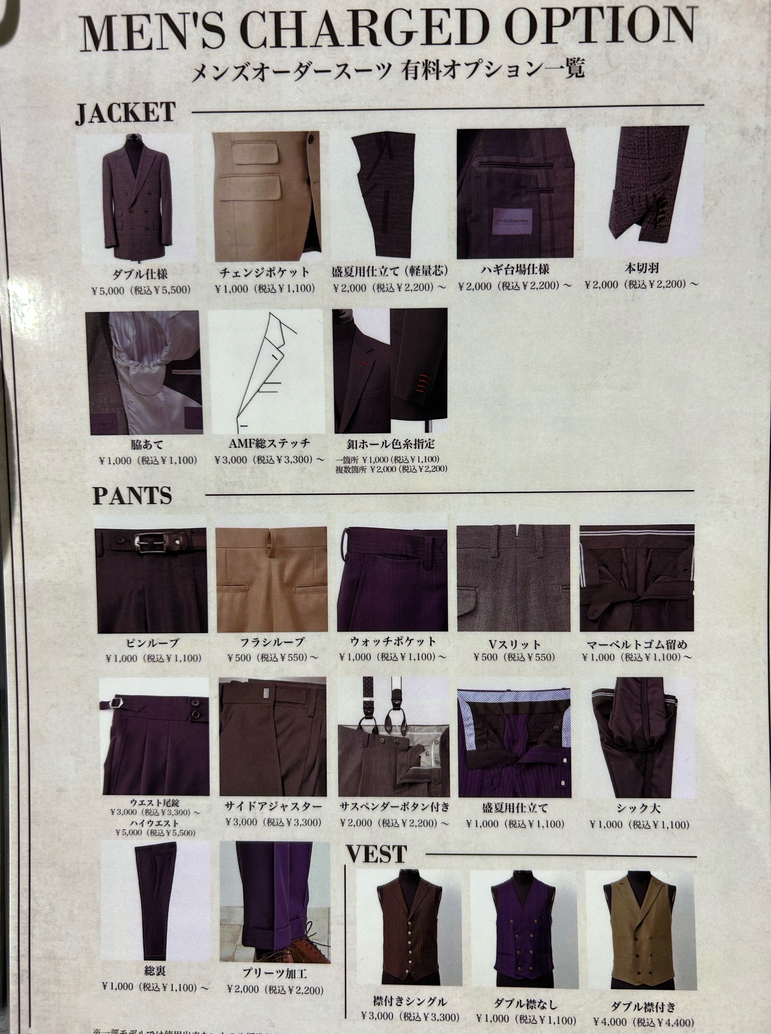今まで有料オプション入れていなかった方も是非この機会に、スーツを仕立ててみてはいかがでしょうか。