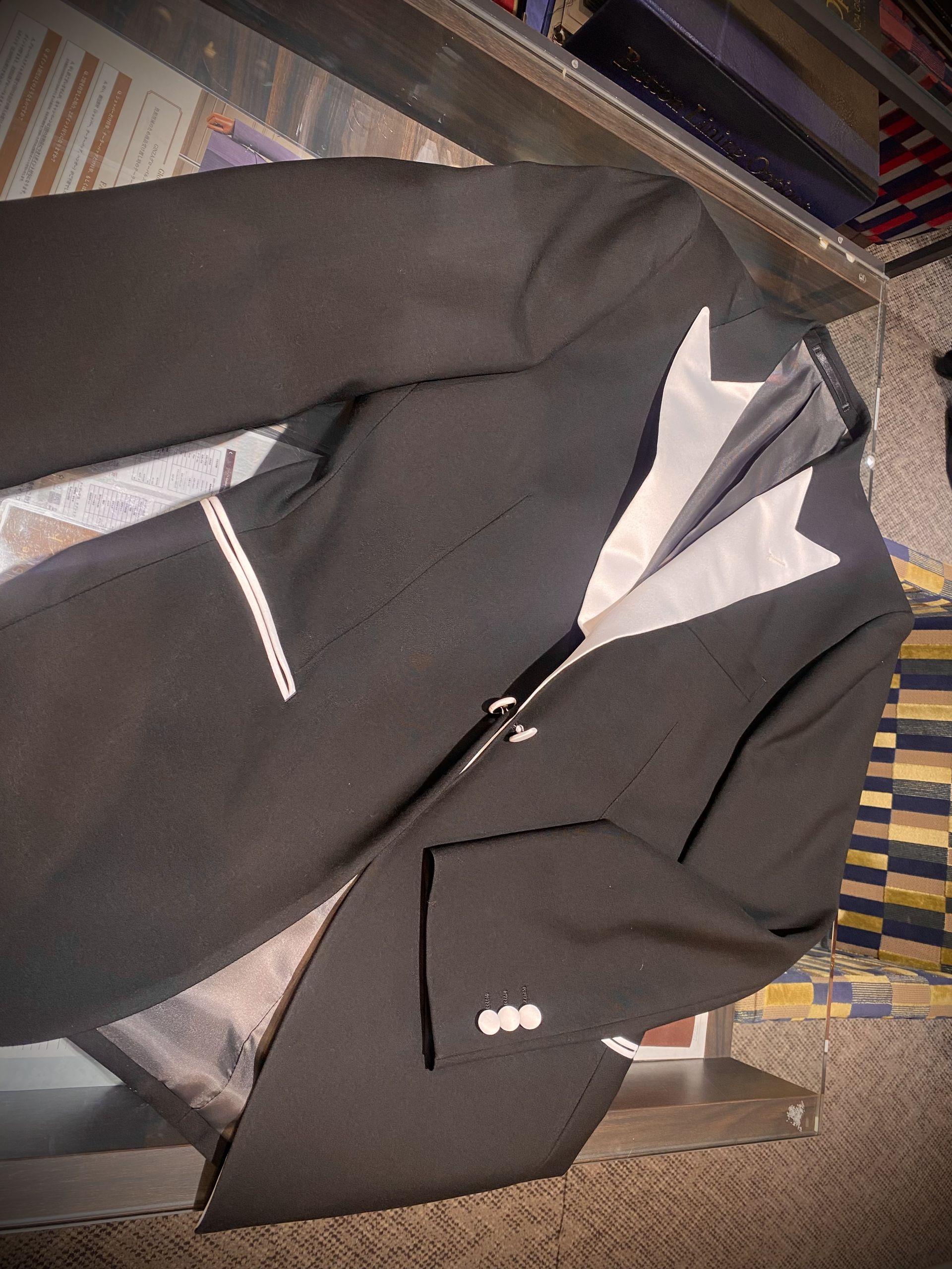 お客様のタキシードですが、拝絹を白してオシャレを楽しむのもよいですね!