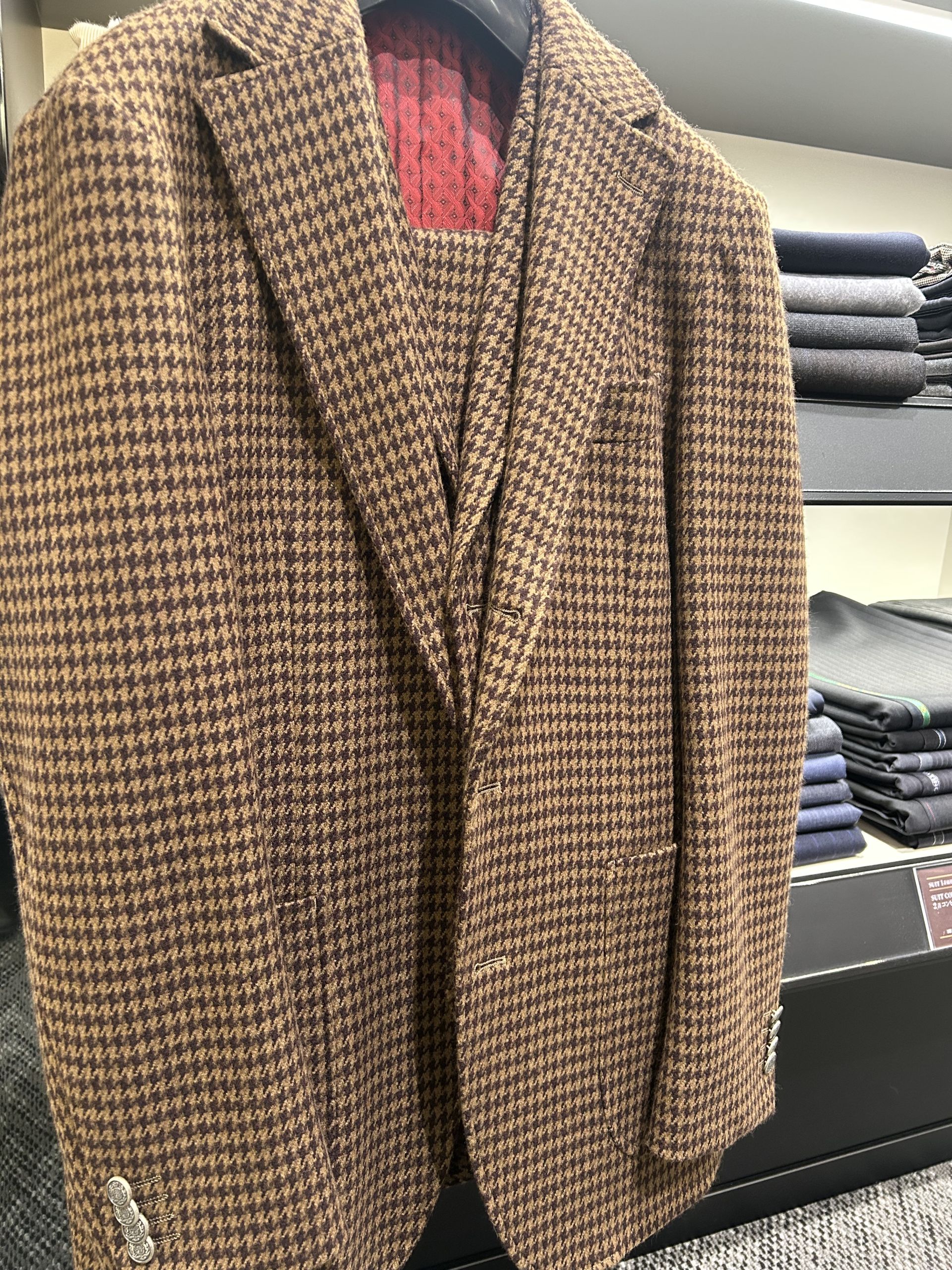 フォックスブラザーズよりブラウンのハウンドトゥースでございます。