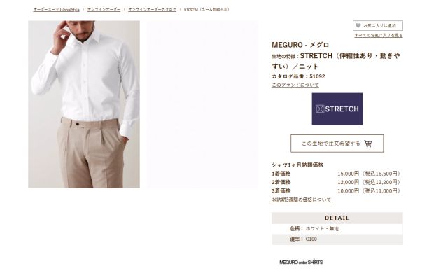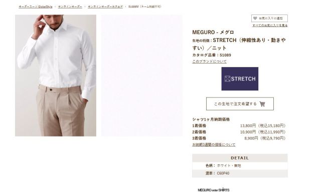 この生地は、通常のシャツ生地に比べるとややカジュアルよりな見え方ですが、