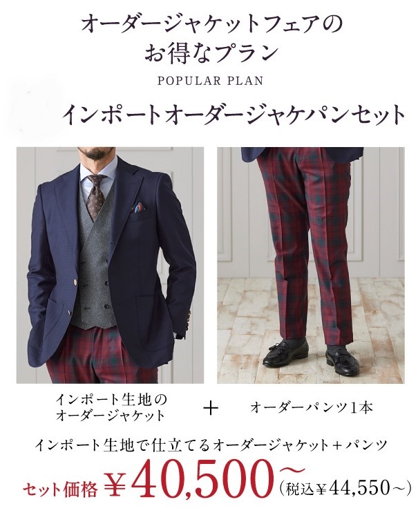 オーダージャケットフェアプランで作っていただけますとお得にご案内ができます!