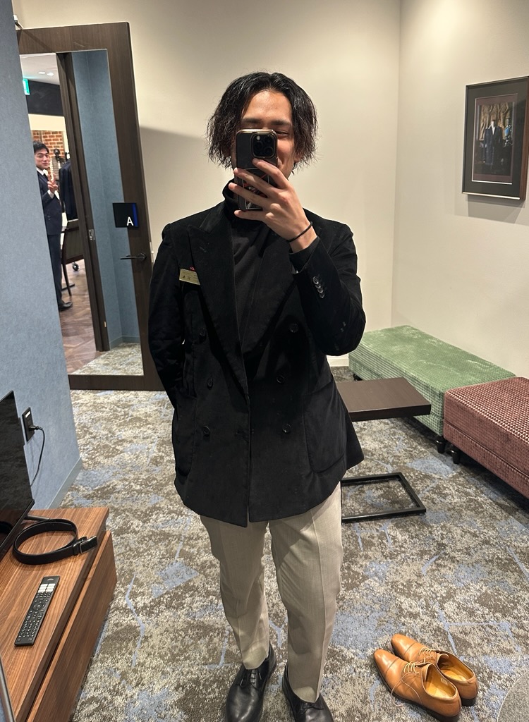インポート生地のジャケットとスラックス一本作って頂けますとでカッコよく着ていただけます。