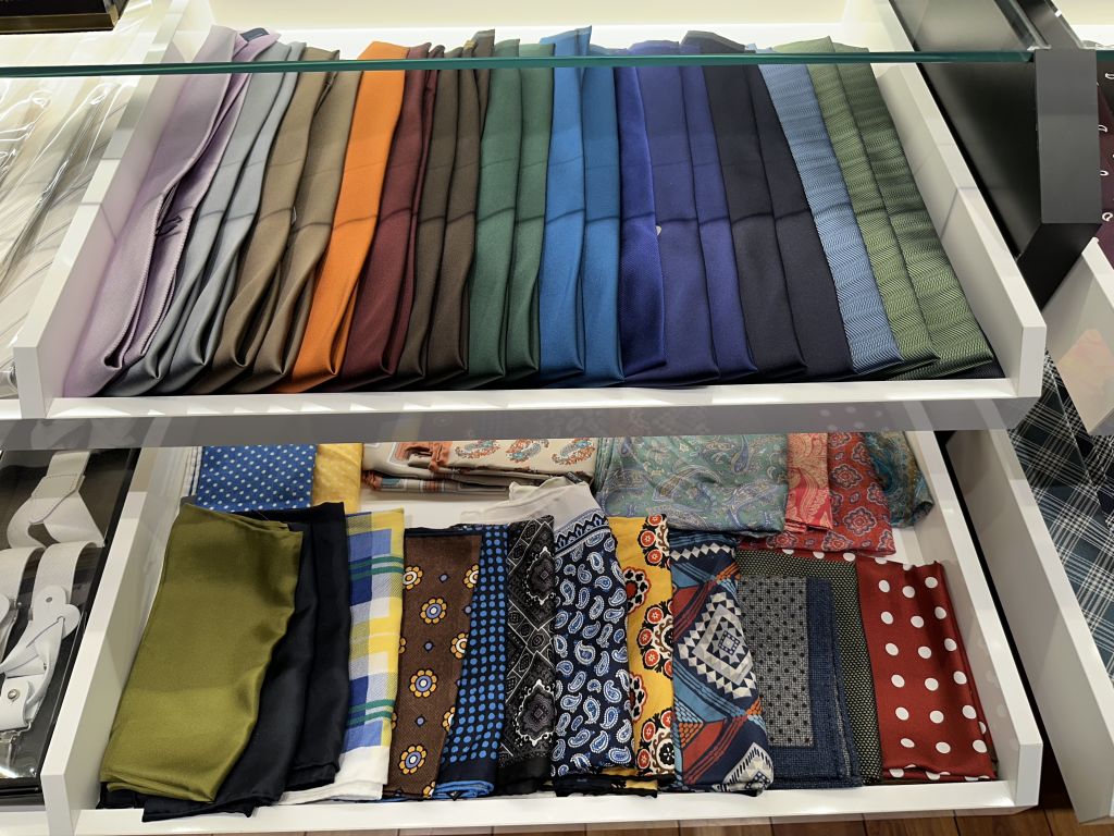 ネクタイ、ソックス、ベルト類など各種各カラーでご用意しております。