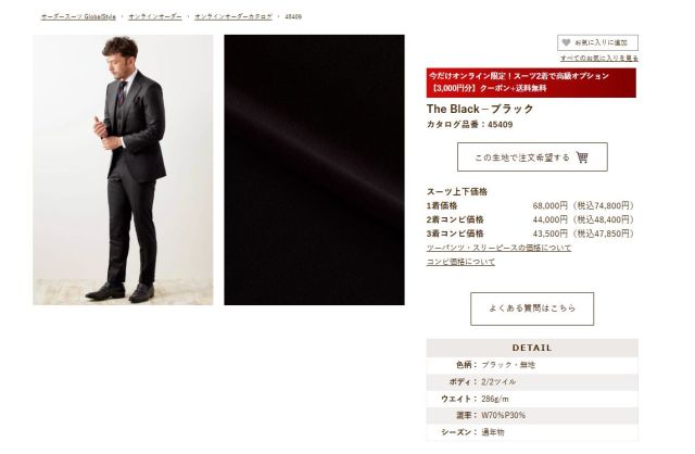 普通のスーツ用の黒の生地よりも、黒の濃さが深く、
