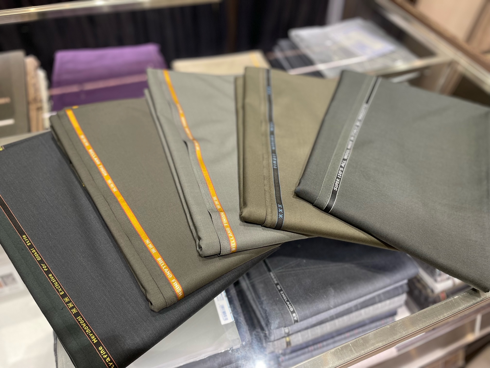 本日は結婚式やレディーススーツなどにも人気のグリーンカラーのスーツ生地をご紹介していきたいと思います。