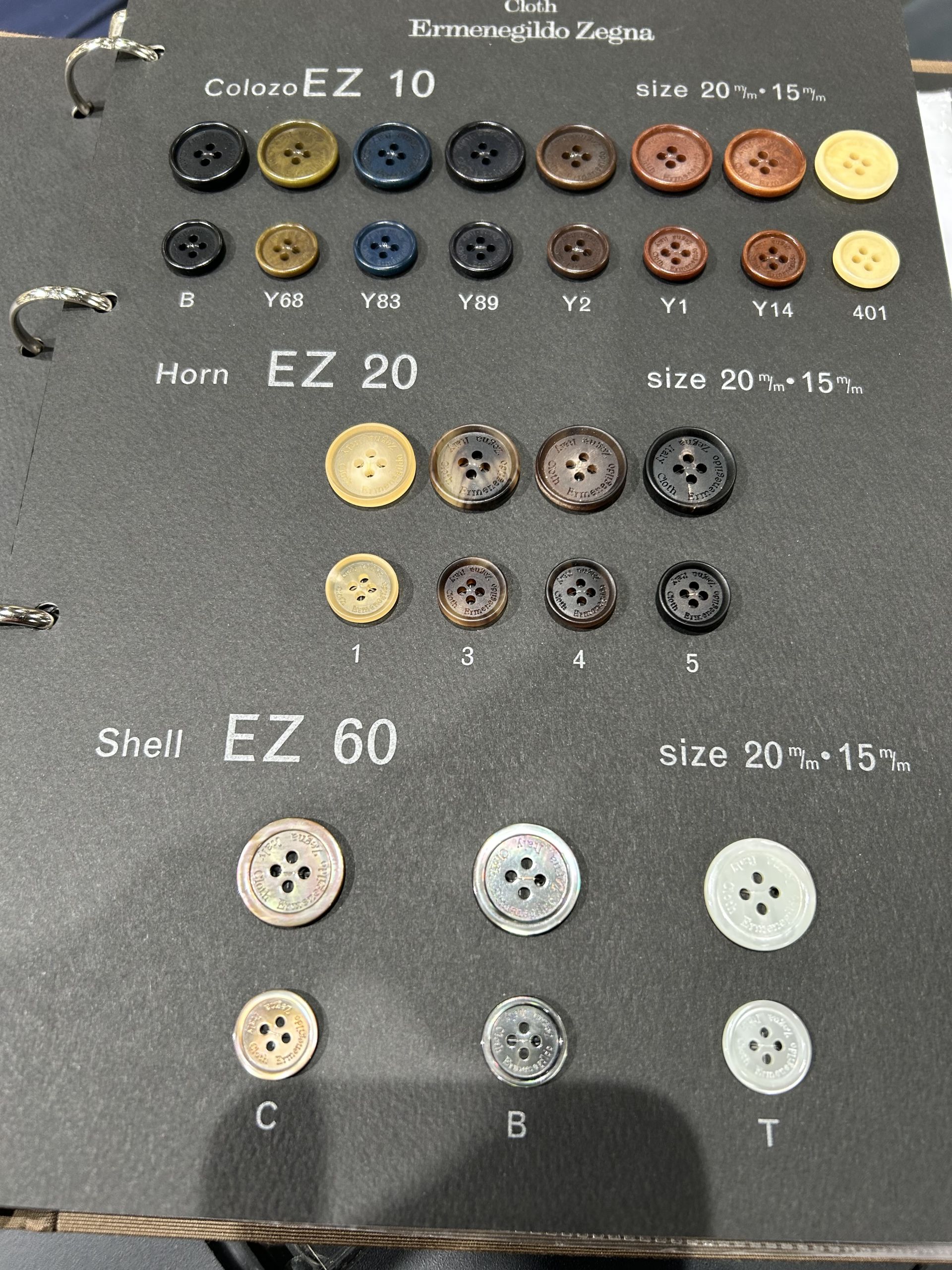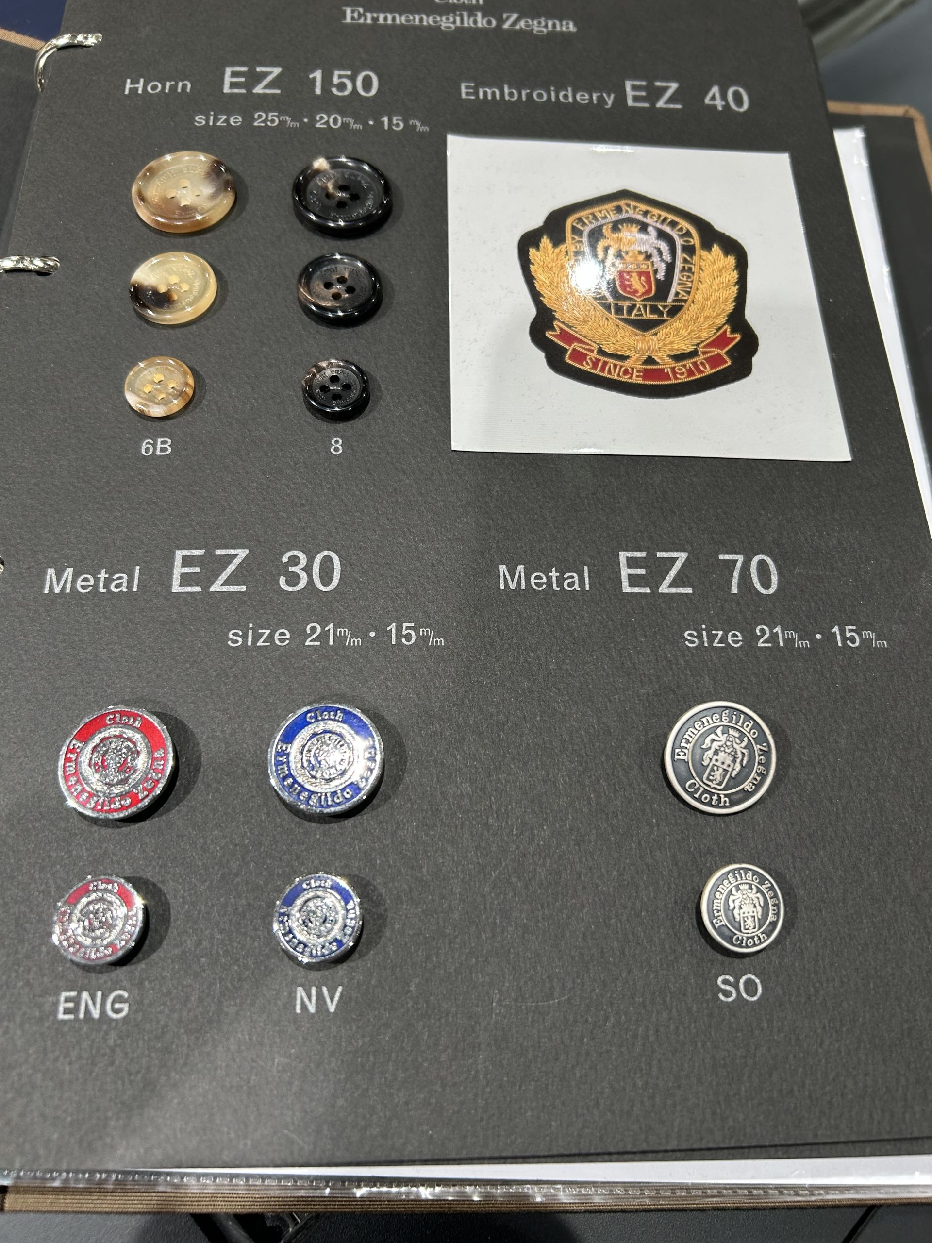 一部だけですが、裏地や釦にもゼニアの名前が入る使用になります。
