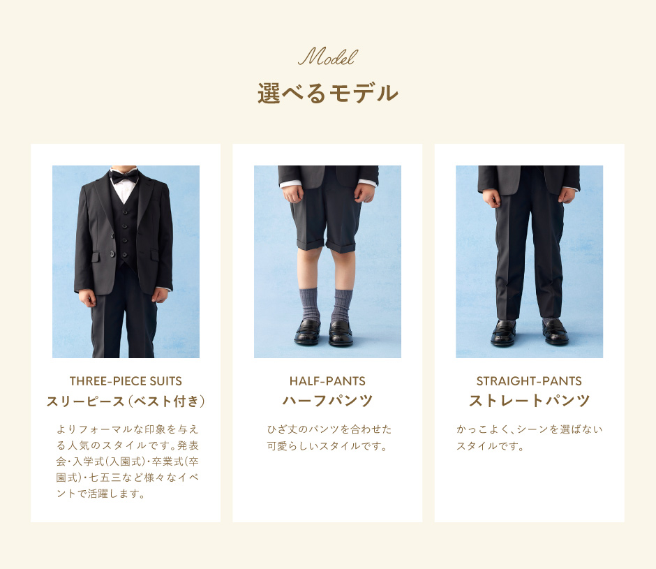 今日はキッズ・ジュニアスーツについてご紹介します。