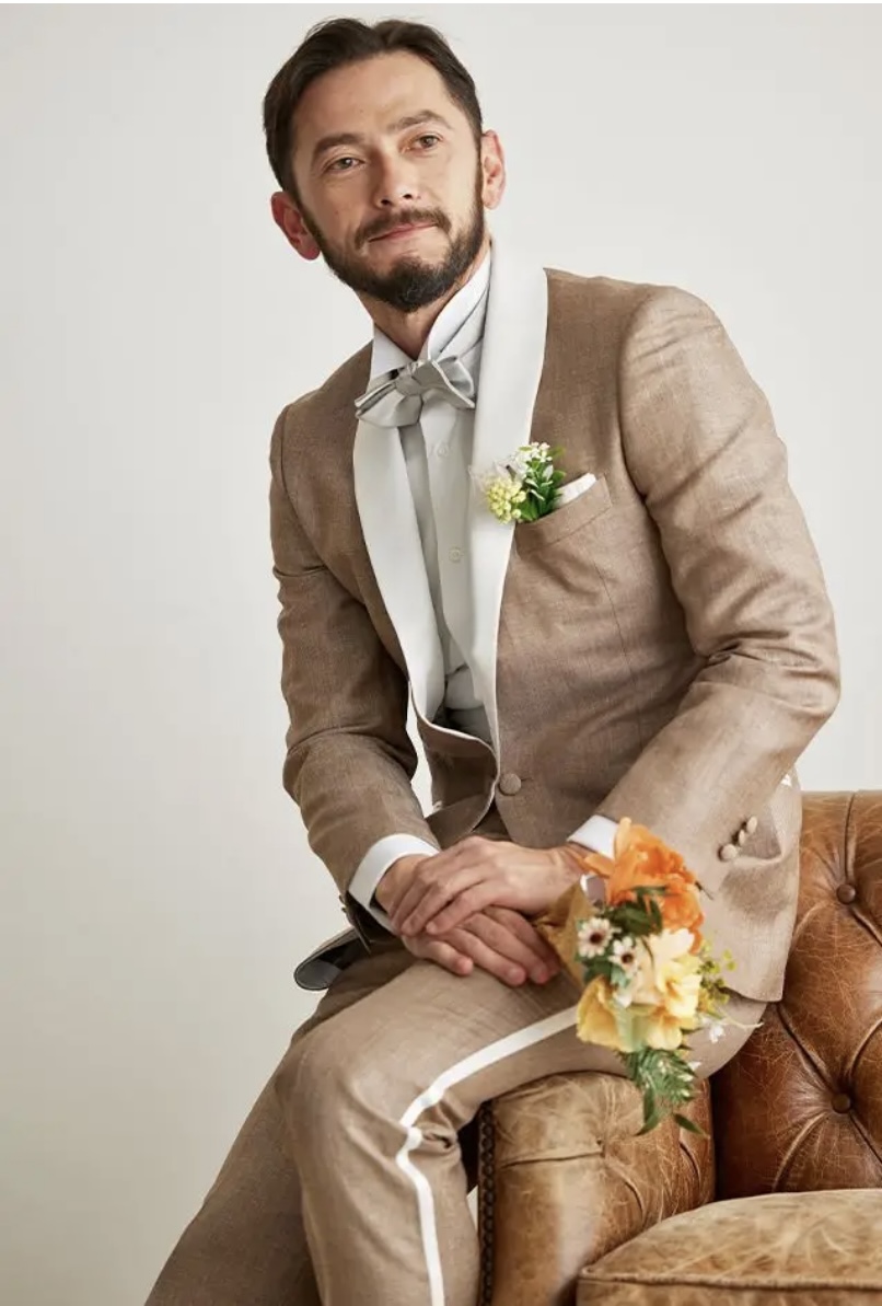 普段見かけることがないようなお色味のタキシードもお作りいただけます!