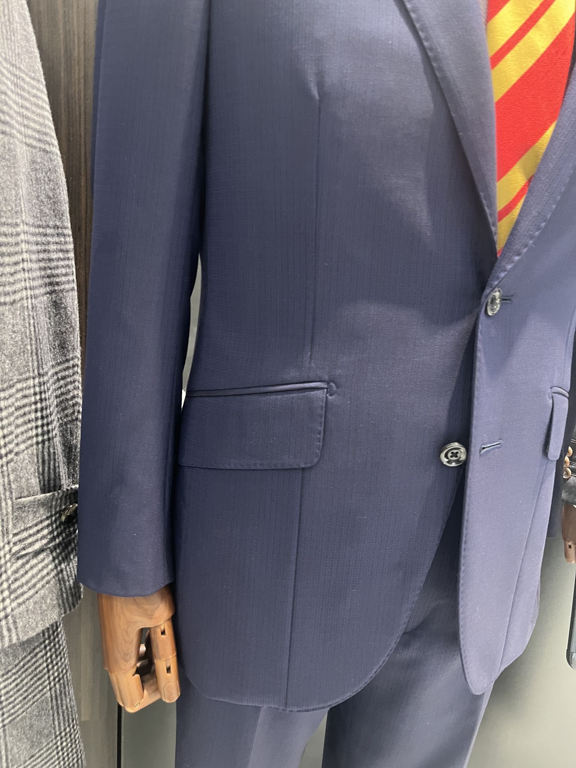 こちらのモデルはご紹介した通り作成工程が多いためお仕立て代を2万円頂くのですが、通常のお仕立てではオプション料金のかかるディティールも標準仕様になっているものが多く、さらにフェア対象生地であればお仕立て代1万円引きでとてもお得です。