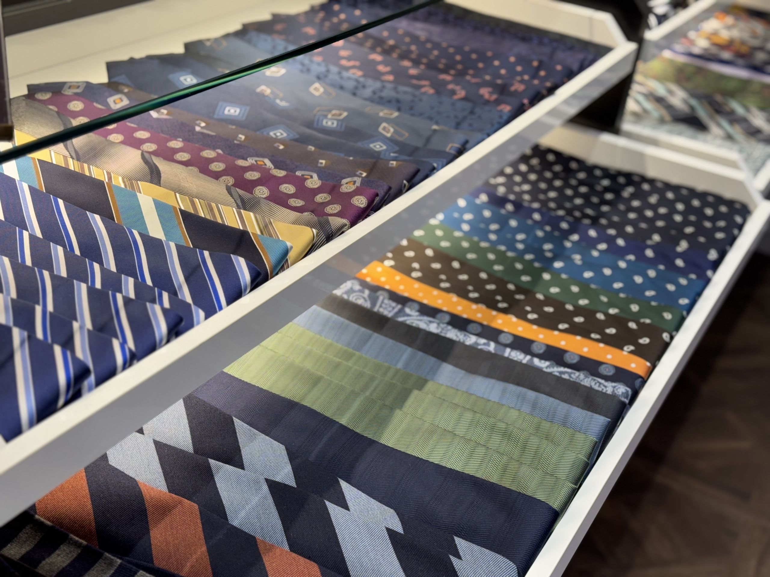 シューズ1足¥33,000(税抜)~、ネクタイ1本¥6,900(税抜)~ご案内可能でございます。