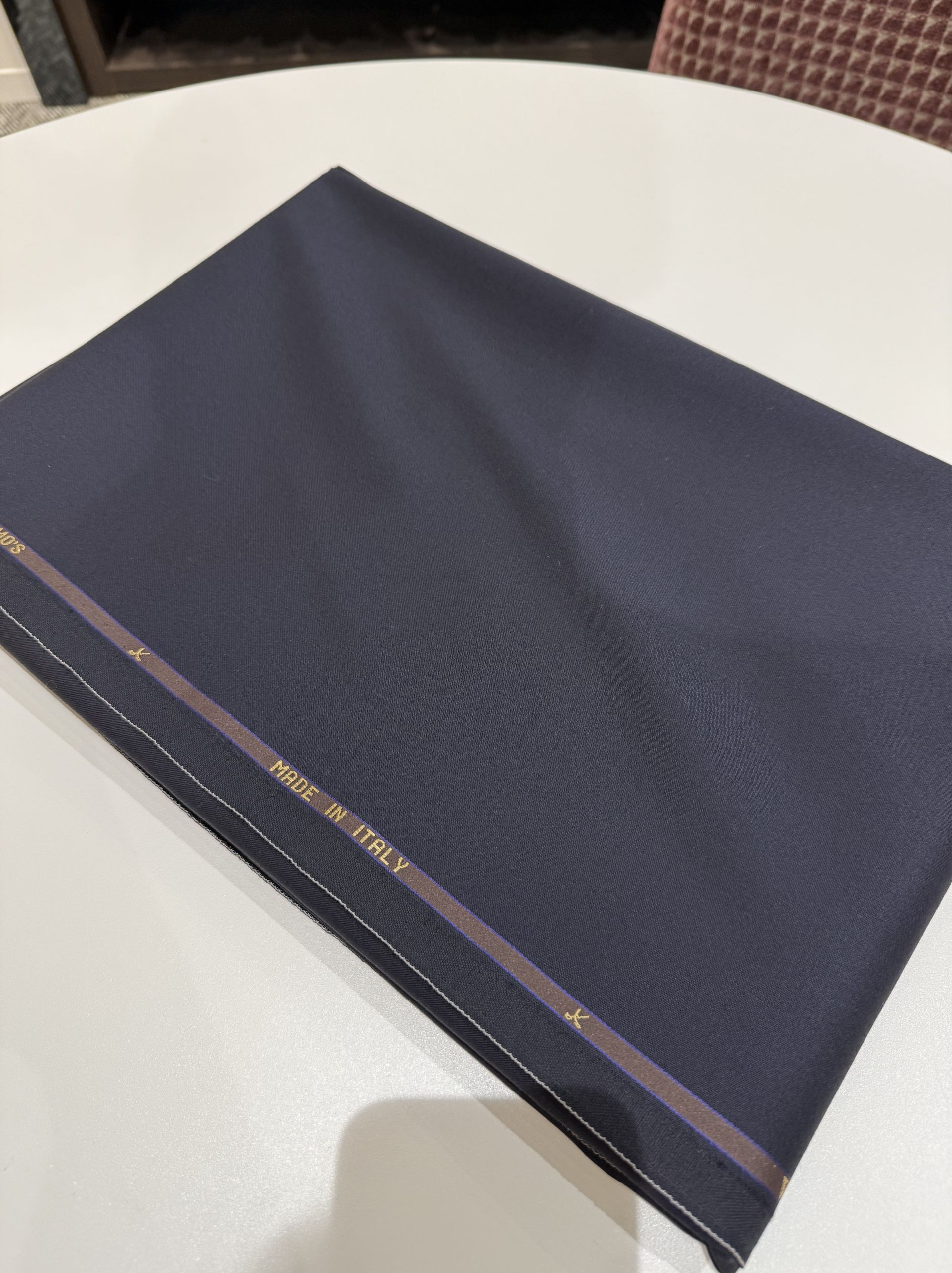 スーツでは王道のネイビーですが程よい光沢感とやわらかさがあり