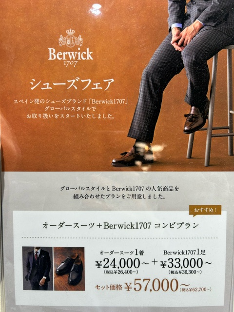 スーツ1着とBerwick1足のコンビプランもご用意しております!