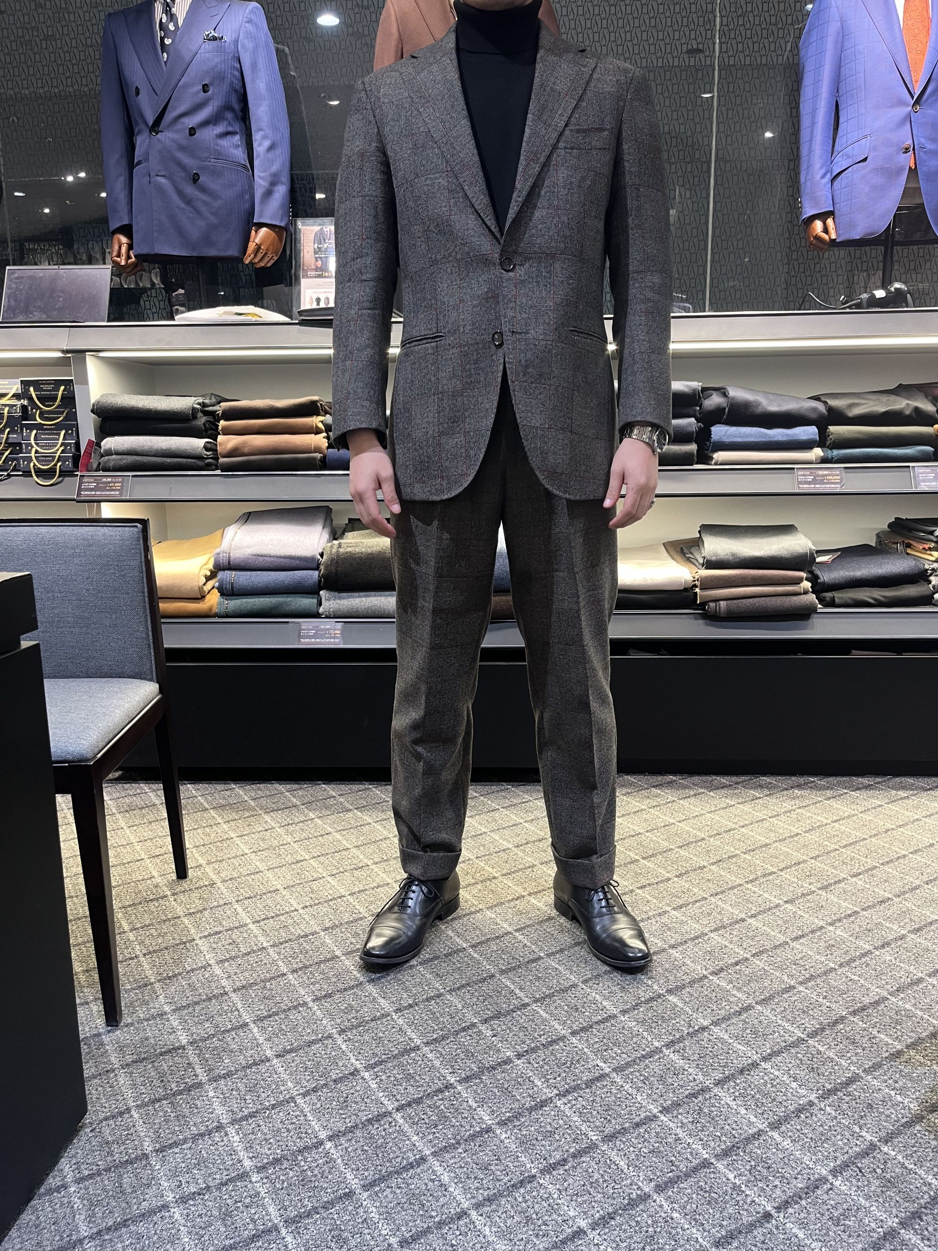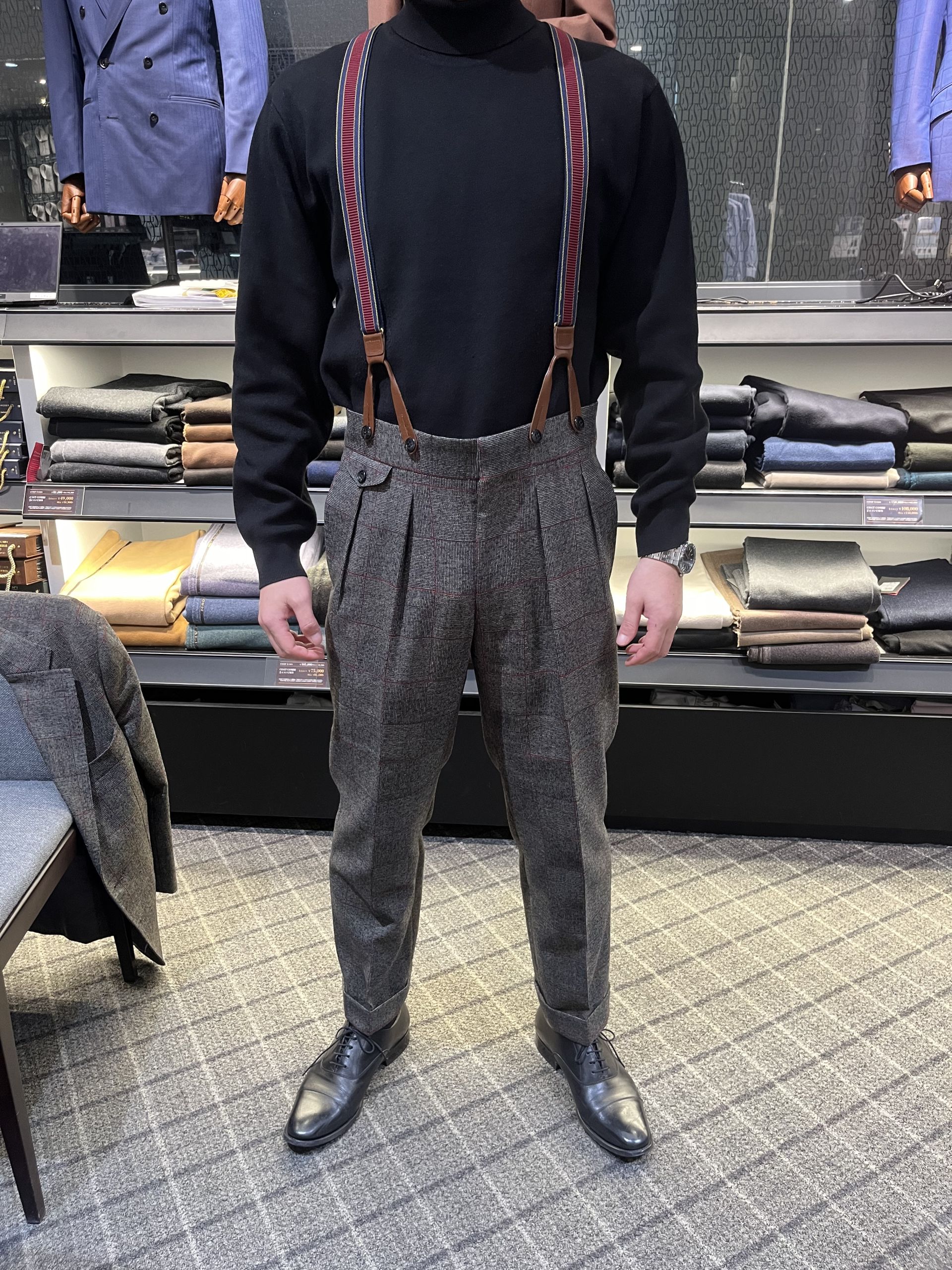 タートルネックに合わせるなら季節感も大事なのでツヤ感のある通年物の生地よりもフランネルや肉厚でマットな質感の生地の方がまとまったコーディネートをしやすいと感じます。