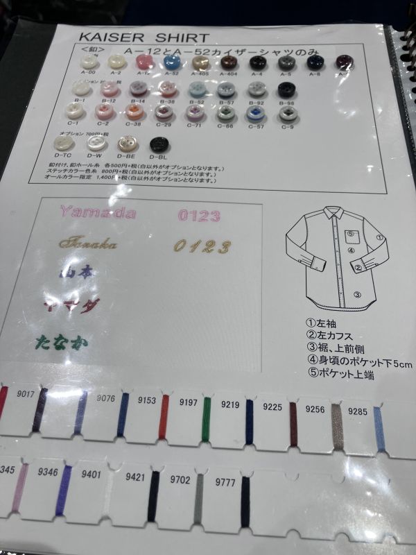 例えばエリの形や袖口の形状、どの様なボタンをつけるか・・・