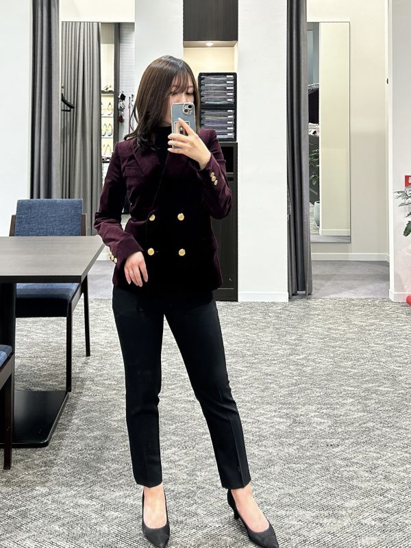 シングルジャケットかダブルジャケットかギリギリまで悩みましたが、ちょうど悩んでいた時に私の大好きなTaylor Swiftがボルドーのダブルジャケットを着ていたので、ダブルにするしかない!と即決しました笑