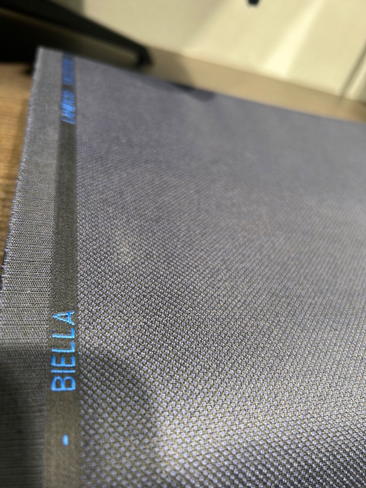 バーズアイと言う、鳥の目に見える様な織柄で、ぱっと見は無地に見えますが、よく見ると無地じゃないのが分かるかと思います。