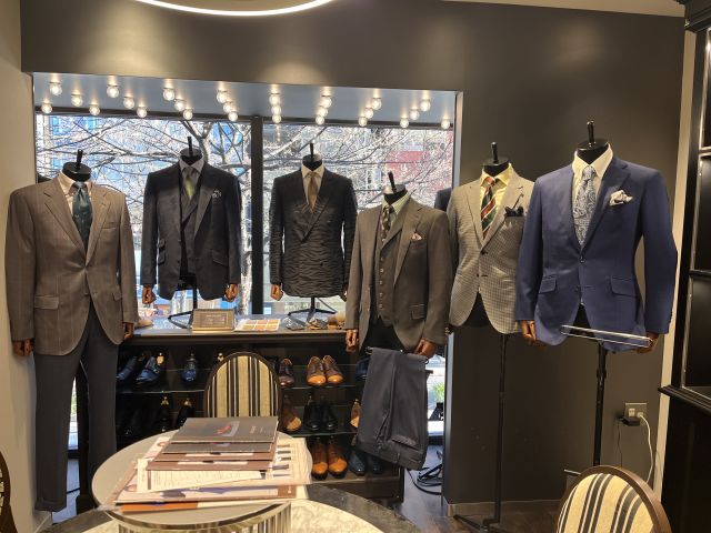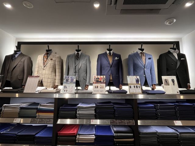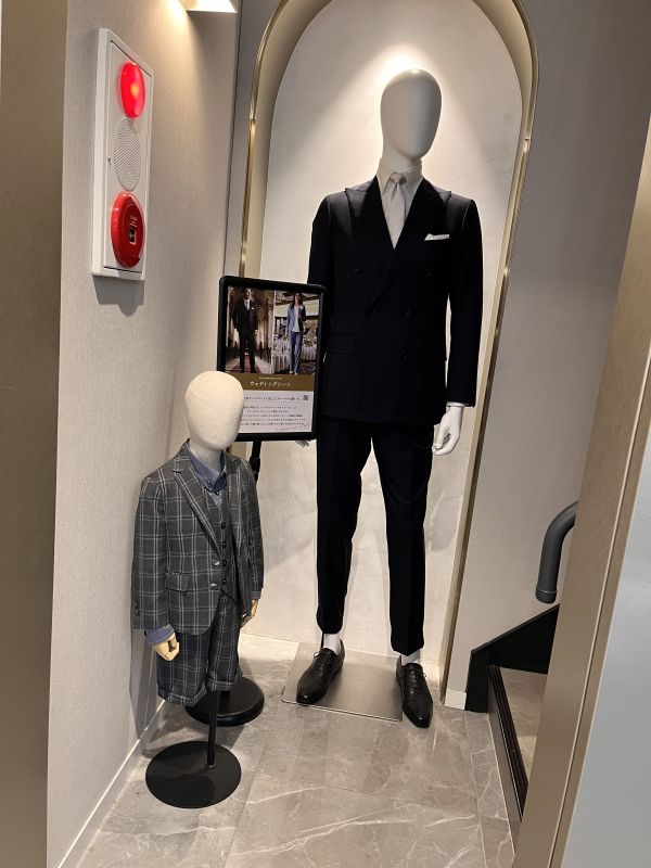 店内にはスーツを着たトルソーがたくさん置かれております。