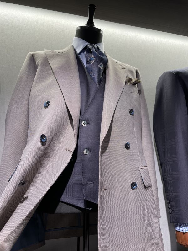 簡単に申し上げると、ジャケット、スラックスの他にベストが同生地で付けられたスーツです。