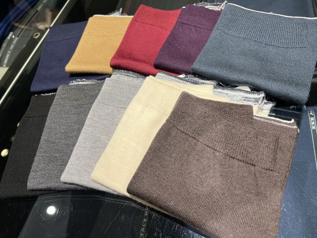 今回はニットをオーダーしようとの事でカラーサンプルとにらめっこ。