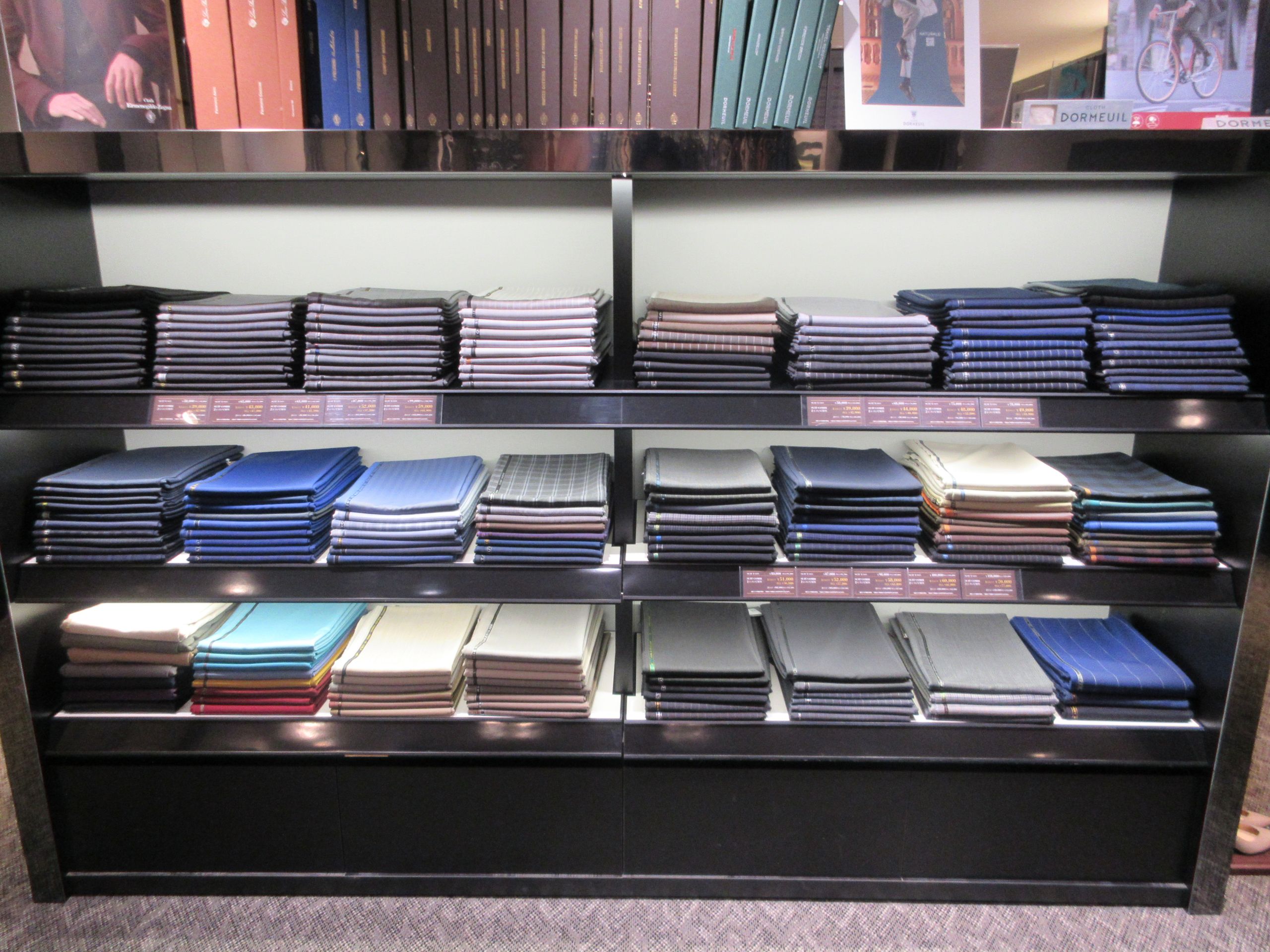 奥へはいるとこのように春夏生地たちが設置してあります。