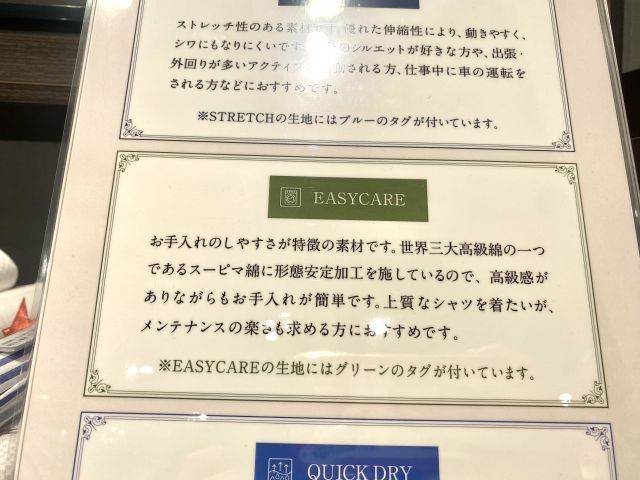 綿100%でありながら形態安定の加工が入っているので、