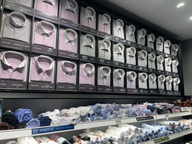 スーツスタイルには欠かせないシャツですが、当店ではお身体のサイズにあったオーダーメイドのシャツもお作り出来ます。