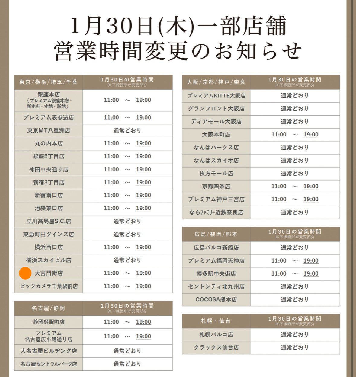 誠に勝手ながら1月30日(木)は棚卸業務につき19時までの営業時間となります。