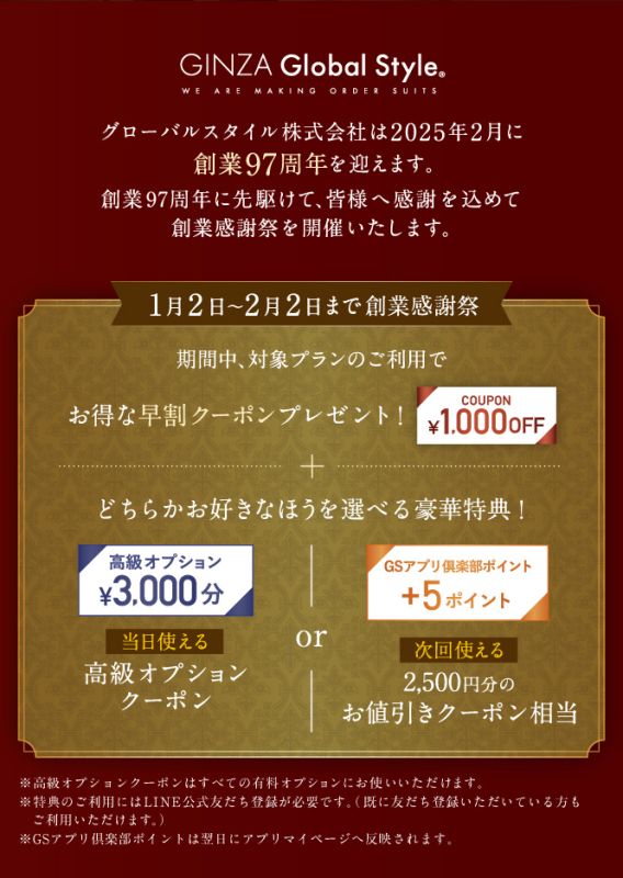 残り僅かとなるので是非この機会にオーダースーツを作ってみてはいかがでしょうか。