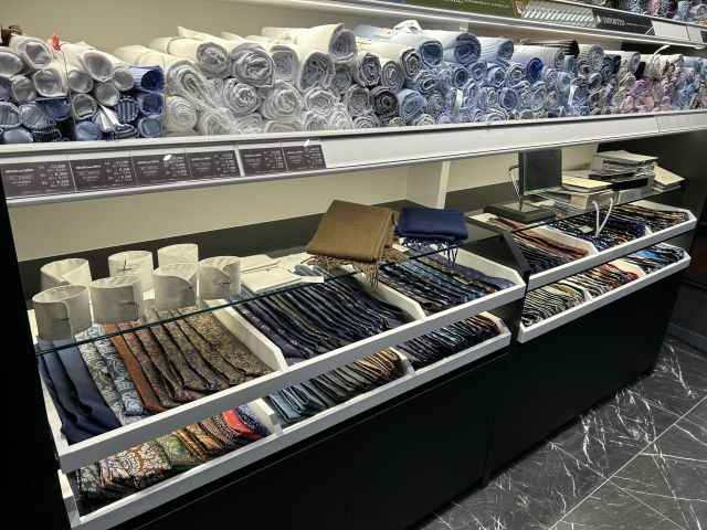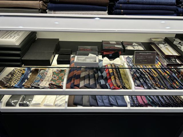 ネクタイや蝶ネクタイの種類が豊富なだけでなく、他店には置いていないアスコットタイやマネークリップもあるんです!