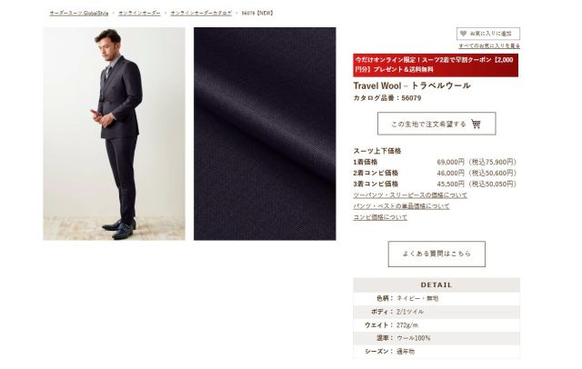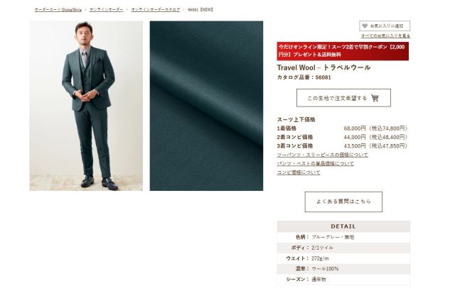 オンラインオーダーカタログ:メンズスーツ生地ページに新機能が追加されました【オンラインオーダーサービス】