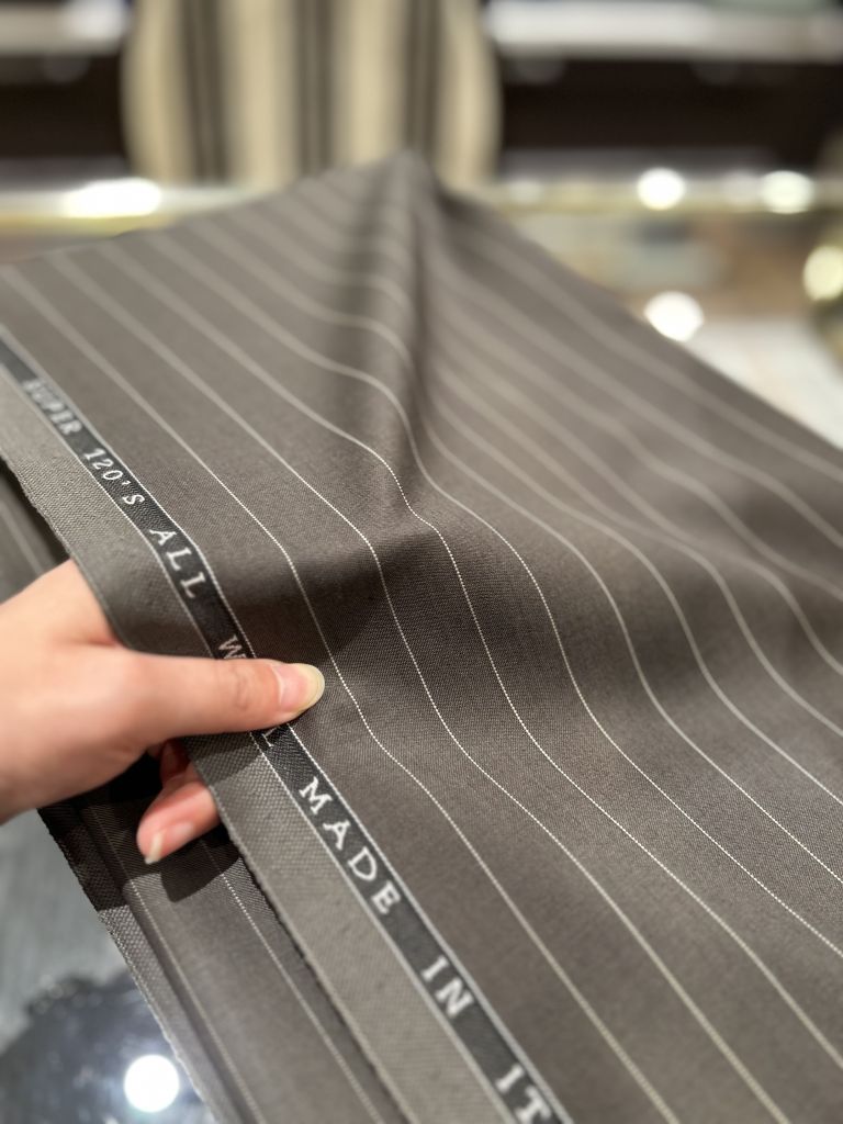 せっかくメンズライクで作るなら、少し男前に太めのストライプがいいな…と物色していたところ、タイミング良くこんな生地が入荷してきました。