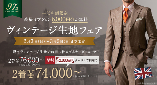 水牛ボタンやキュプラ裏地など1点物のスーツを