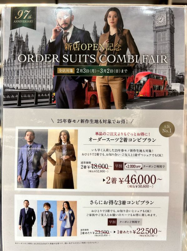 今月のフェアで2着以上ご購入いただくと、1着につき のお値引きもしております!(2着で ¥2,000お値引き)
