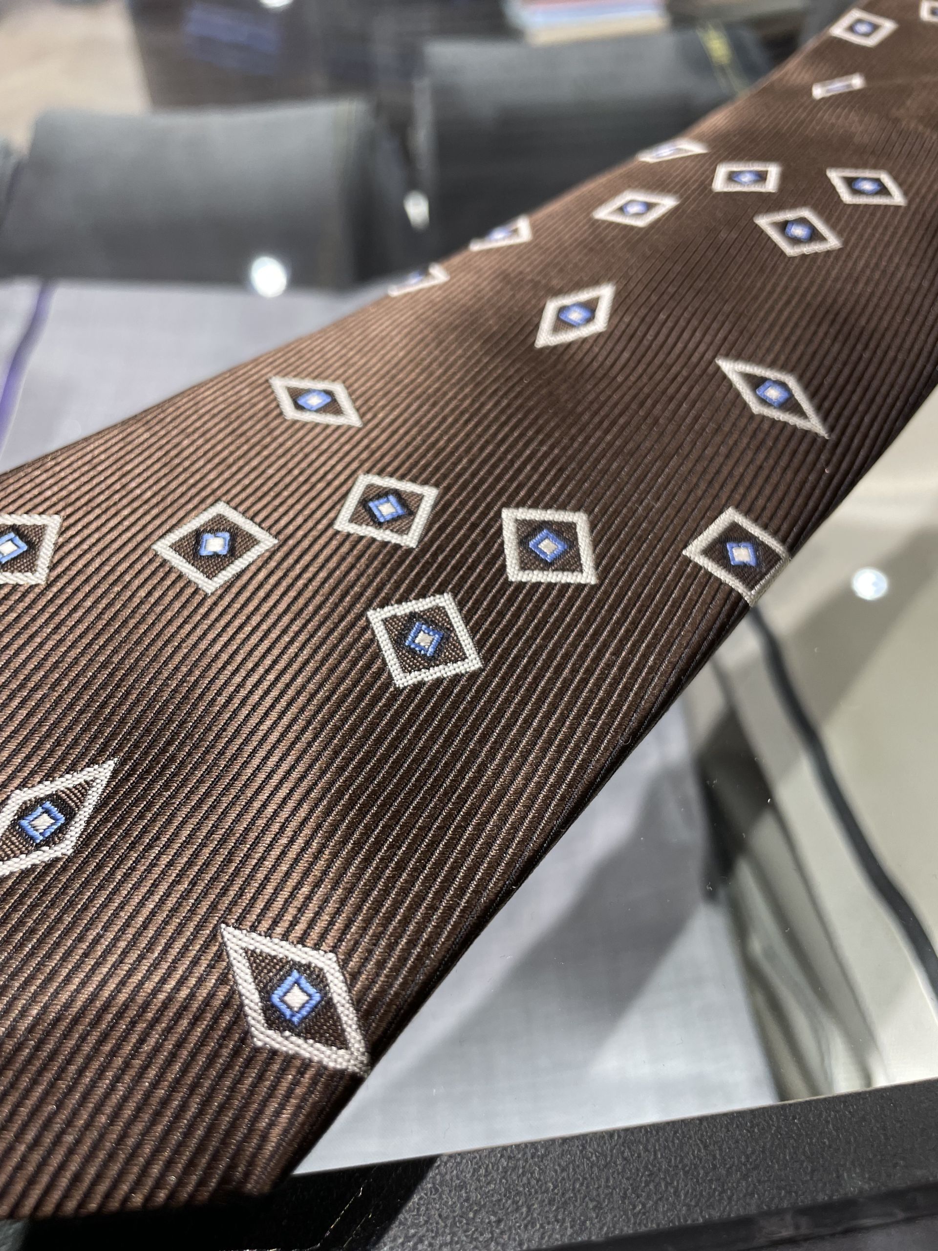 最後にこちらのブラウンの小紋タイとなります。