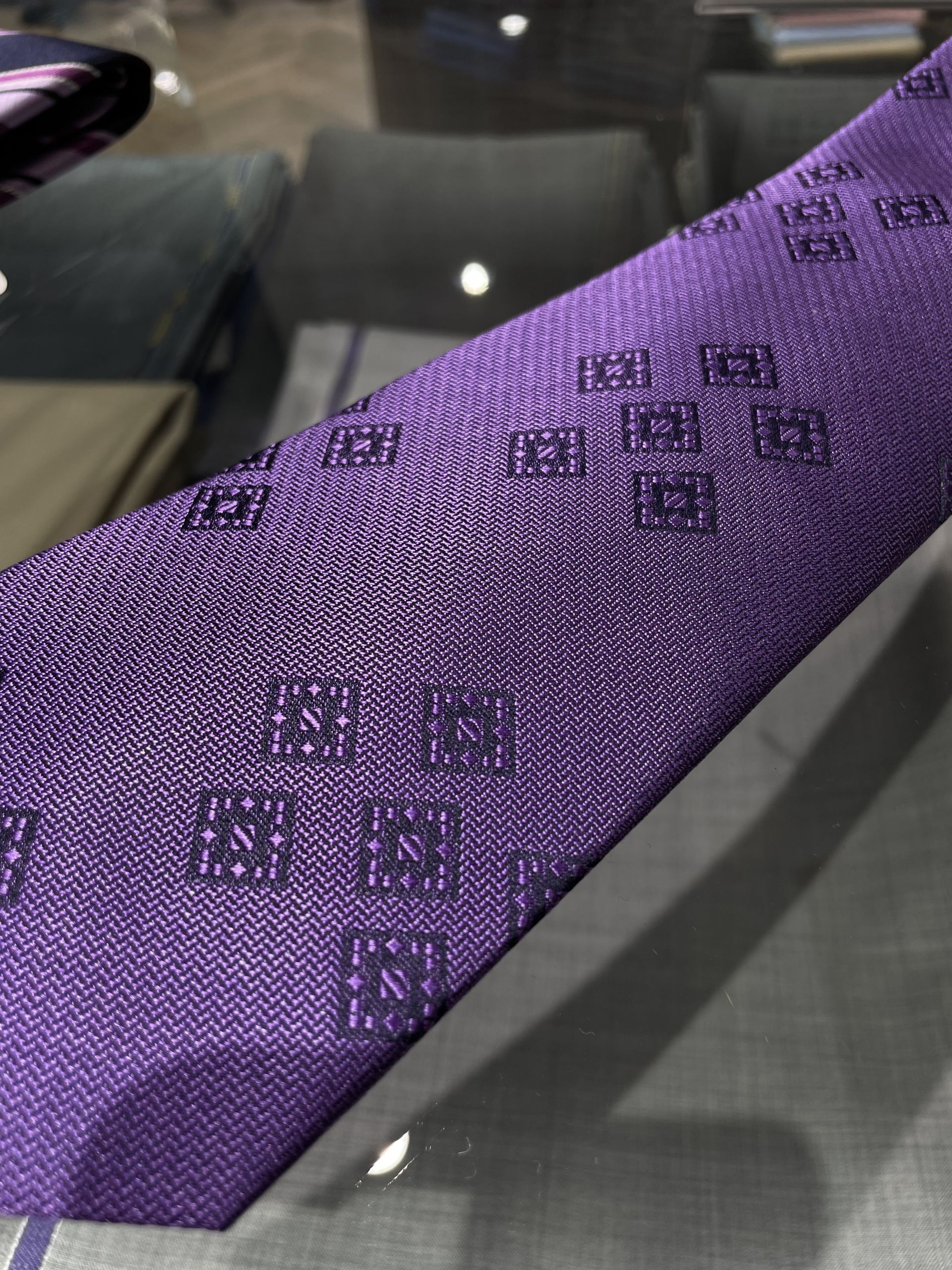 続きましては、こちらのパープルな小紋タイになります。