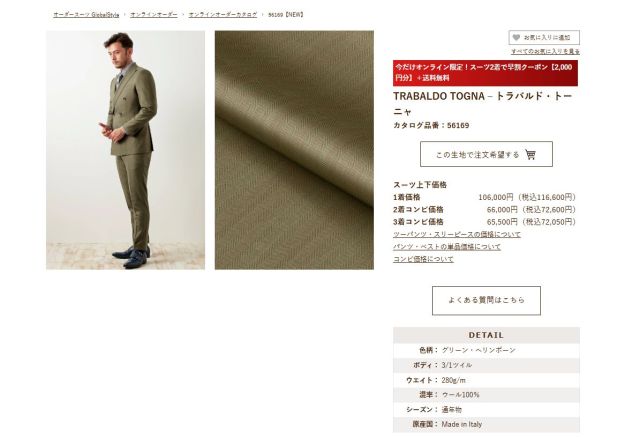 オンラインオーダーカタログ:メンズスーツ生地ページに新機能が追加されました【オンラインオーダーサービス】