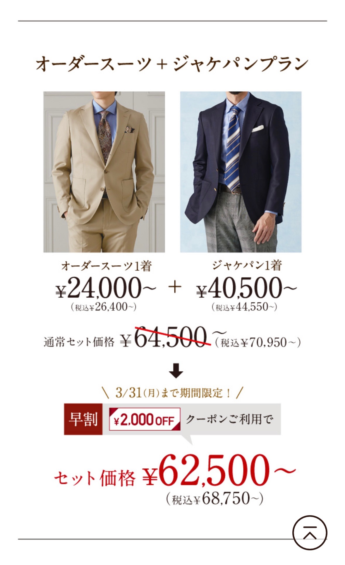 スーツ1着とジャケパン1着で作っていただきますと