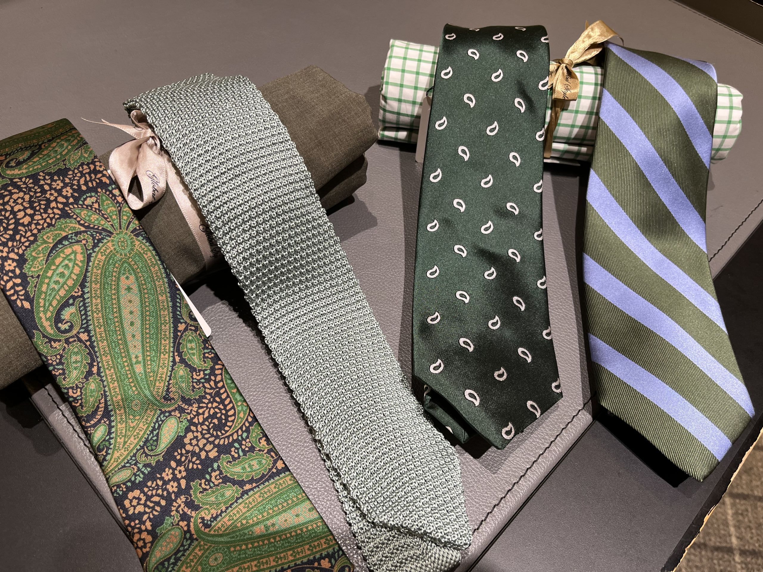 お仕事上カーキはなぁ、なんて方には小物のネクタイやシャツがおすすめです。