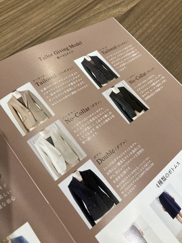 サンプル着用のディスプレイもご用意しておりますので、ぜひ参考にしていただければと思います。