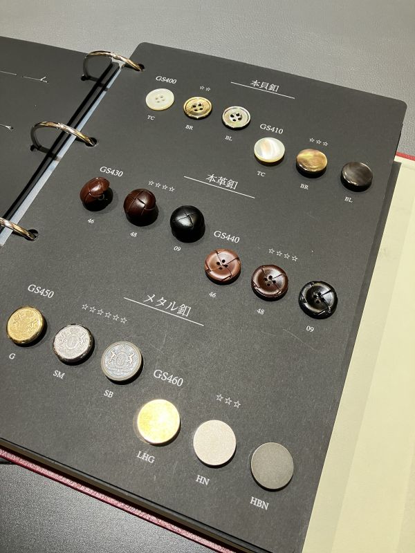 釦と裏地の選び方でオーダー感が左右されるので、ぜひ拘って頂きたい項目となります!!