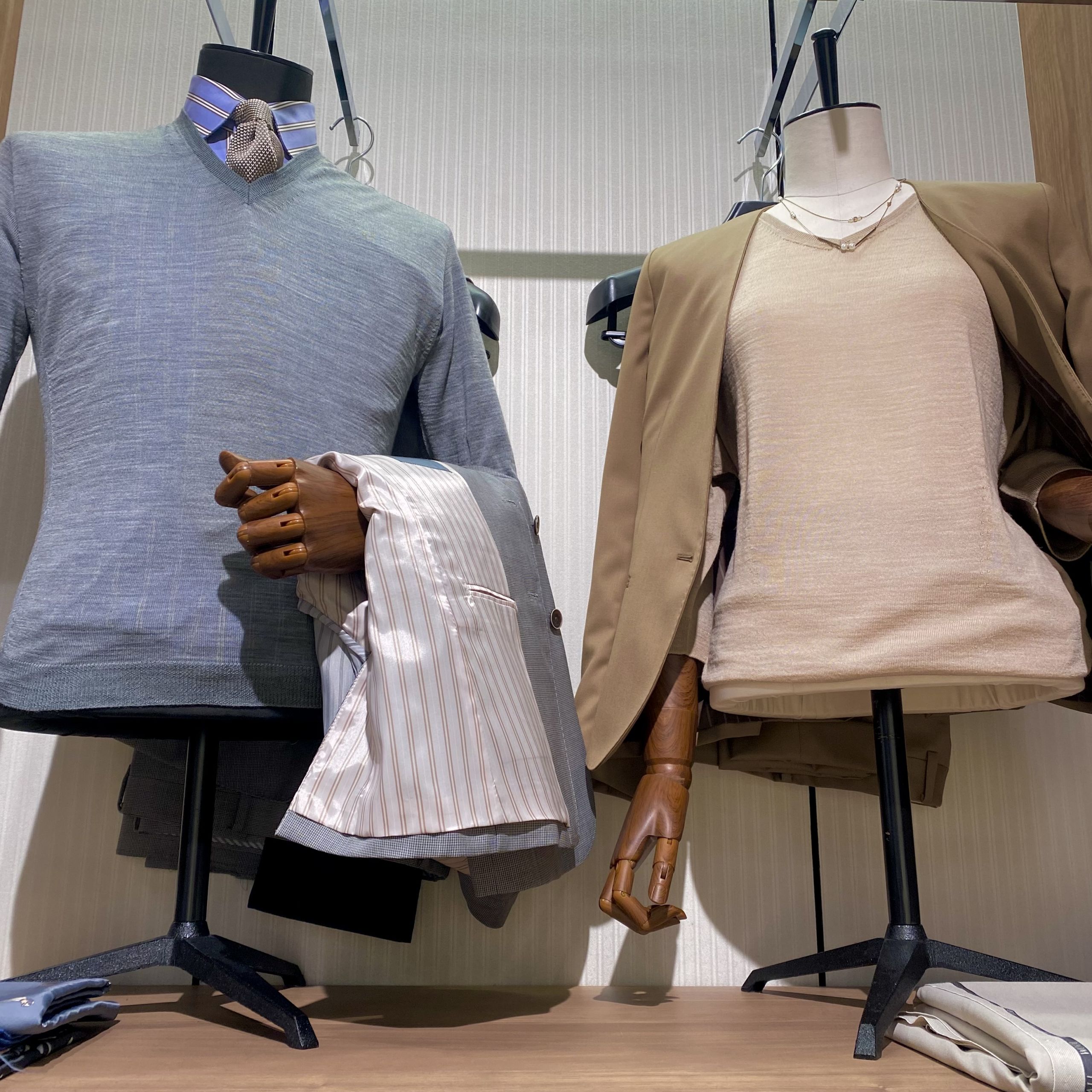 グローバルスタイルで取り扱っている物は薄く軽いのでスーツの下にも着やすいです。