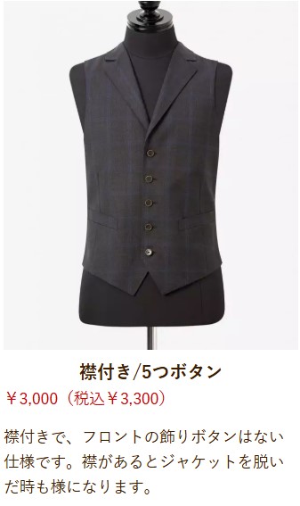 3ピースでご注文頂く場合は、ベストの襟付きを選ぶと