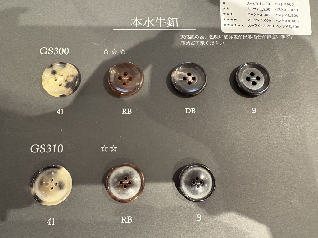 オーダースーツといったら本水牛と考える方も多い人気の釦です。