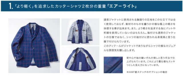 春夏生地と合わせてお作りいただいたり、ジャケットの裏地を背抜きにしていただくことで