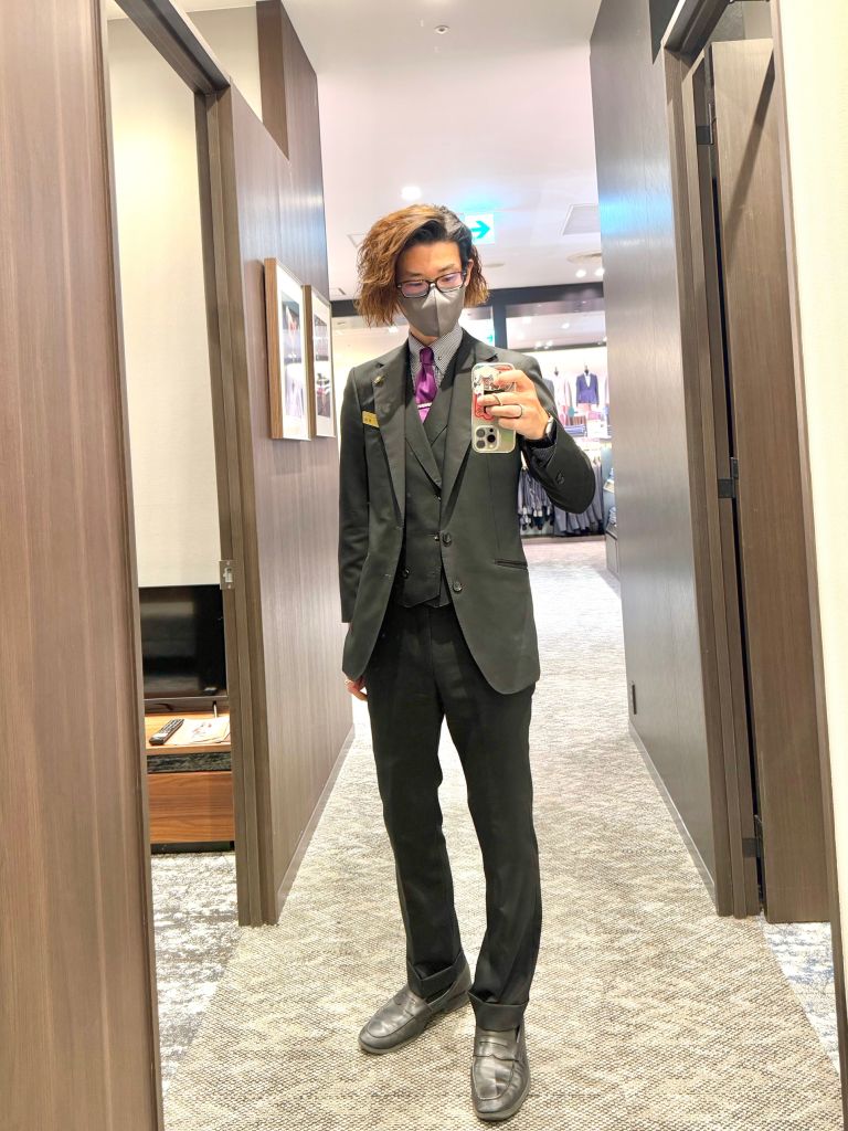 中のベストはダブルの襟付きにしてよりお洒落さをプラス٩( ”ω” )و