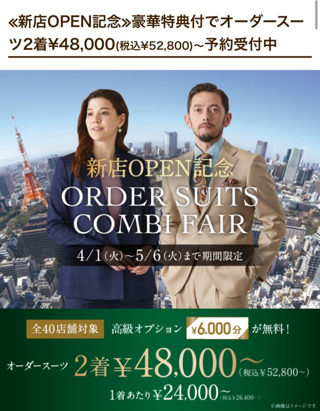 スーツ2着以上おまとめ買いでお安くなる2着コンビ価格は