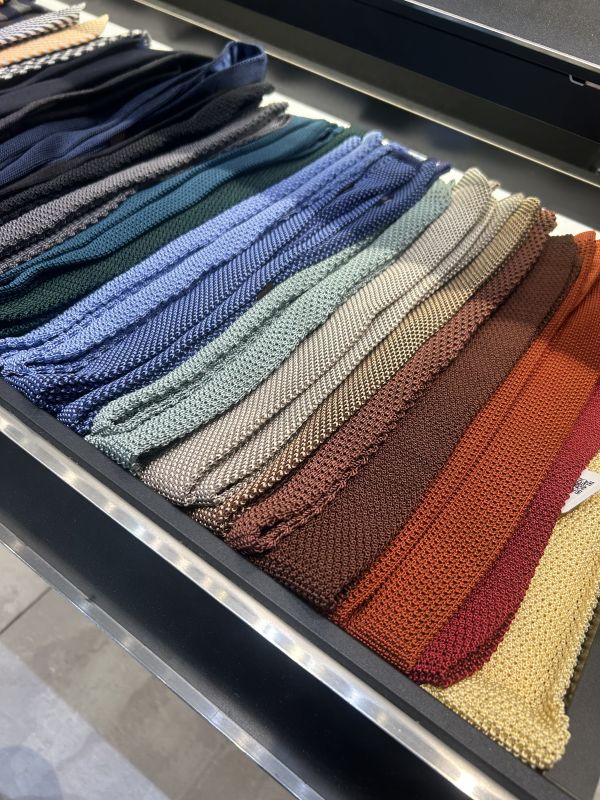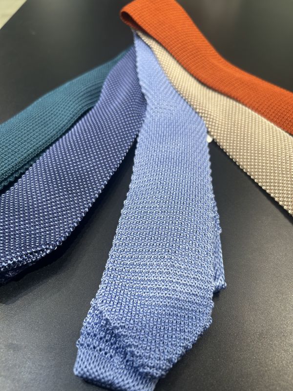 一本に糸から編んで作るニットタイ。みなさんもていますか?